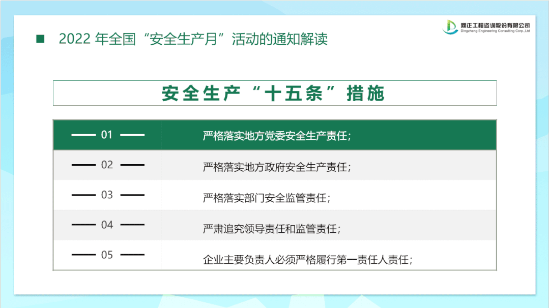 今年6月是第21個(gè)全國“安全生產(chǎn)月”,主題是“遵守安全生產(chǎn)法,當(dāng)好第一責(zé)任人”,6月16日為全國安全宣傳咨詢?nèi)?。鼎正咨詢積極響應(yīng)國家號召,全面啟動安全生產(chǎn)月活動,凝聚安全共識,進(jìn)一步強(qiáng)化底線思維,將安全意識植根于每個(gè)人心間。