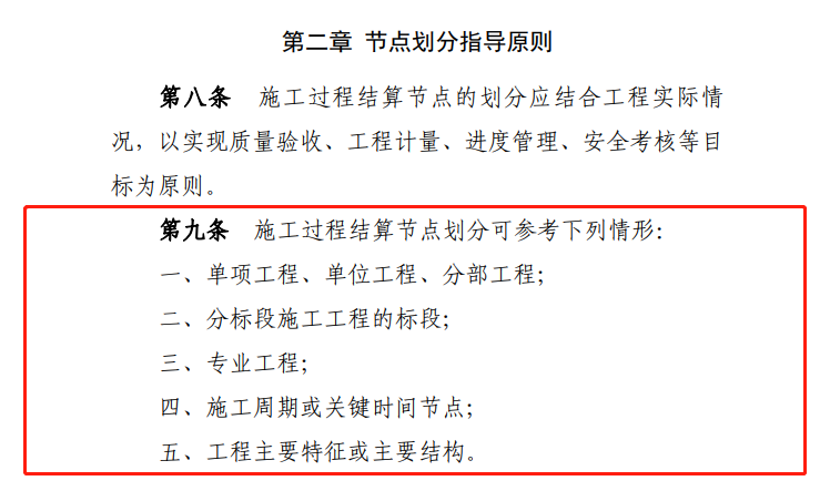 1.施工過程結算節點劃分