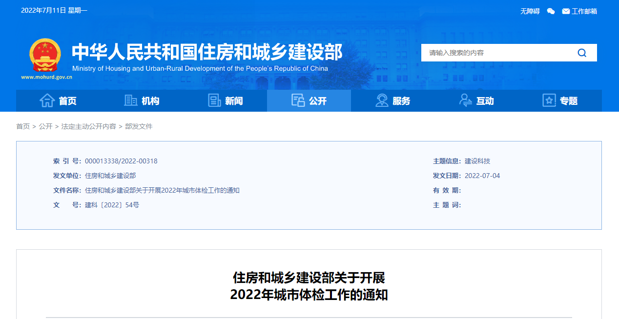住房和城鄉建設部關于開展2022年城市體檢工作的通知