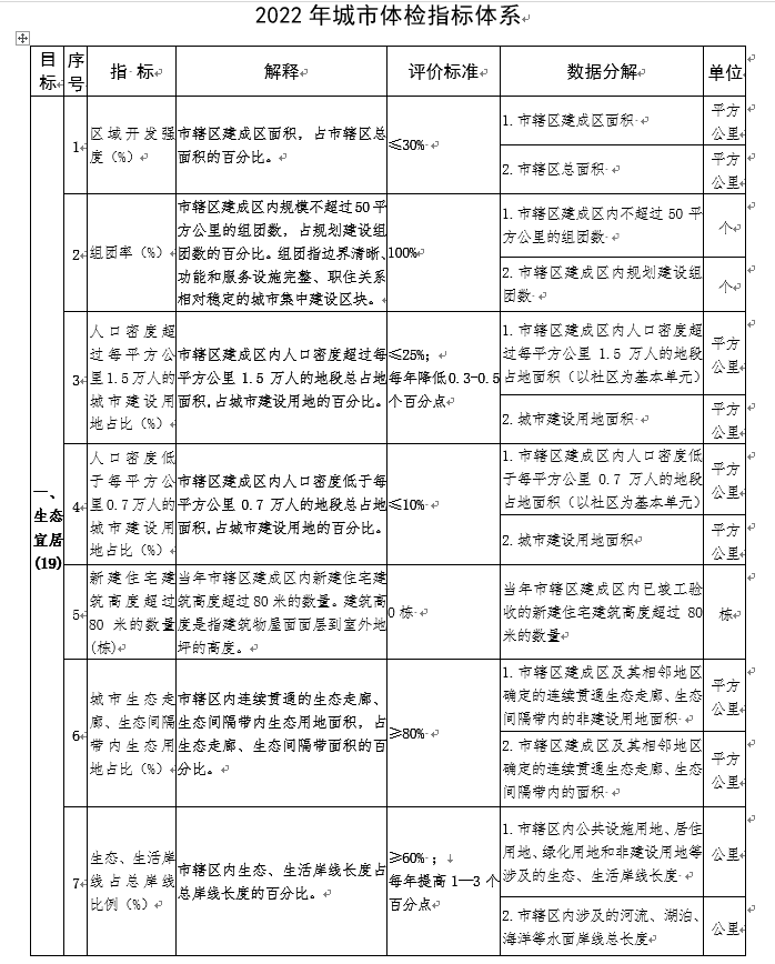 為深入貫徹習近平總書記關于建立城市體檢評估機制的重要指示精神,落實中共中央辦公廳、國務院辦公廳印發的《關于推動城鄉建設綠色發展的意見》部署要求,經協商研究,在歷年城市體檢工作基礎上,決定繼續選取直轄市、計劃單列市、省會城市和部分設區城市(見附件1,以下簡稱樣本城市)開展2022年城市體檢工作。現將有關事項通知如下:
