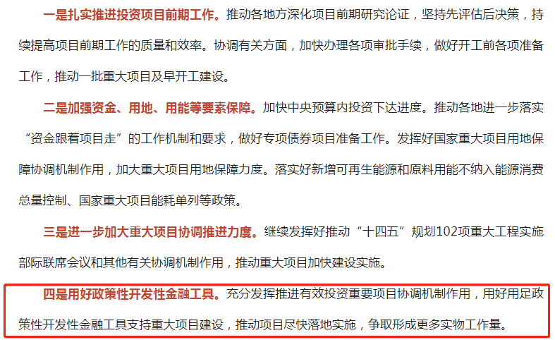國常會提出的政策性、開發性金融工具為項目資本金又增加了一個新的資金渠道,可以更大程度的撬動市場資金,引導金融機構加大配套融資支持,吸引民間資本參與。目前各省市正積極推進政策性、開發性金融工具項目申報組織和資金投發等工作,持續提升地方金融治理能力,優化區域金融創新結構,從而不斷激活金融資源流入,促進基礎設施投資、助力重大項目建設。