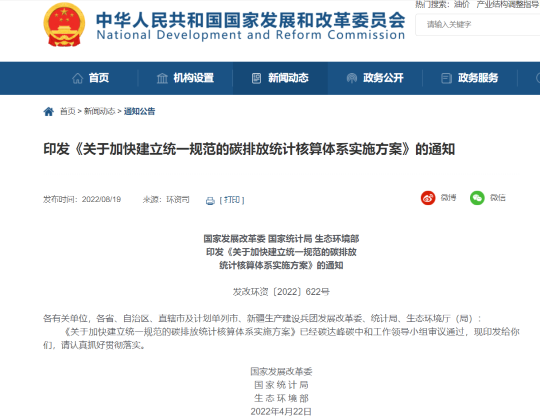 近日,國家發展改革委、國家統計局、生態環境部聯合印發了《關于加快建立統一規范的碳排放統計核算體系實施方案》(以下簡稱《方案》)。這是我國碳排放核算統計工作進程中里程碑式的文件,對于夯實碳排放統計數據基礎、提高碳排放數據質量、為“雙碳”工作提供科學可靠的數據支撐具有十分重大的意義。