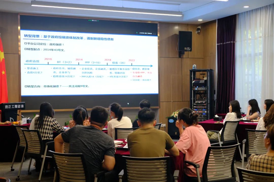 9月30日上午,中城新型城鎮(zhèn)化管理咨詢(北京)有限公司總經(jīng)理?xiàng)钯R龍受董事長(zhǎng)王雁然的邀請(qǐng)蒞臨鼎正第一辦公空間,共同探討新形勢(shì)下工程咨詢企業(yè)如何借助政府投融資平臺(tái)公司轉(zhuǎn)型契機(jī)找到“二次增長(zhǎng)點(diǎn)”的路徑,并就《政府投融資平臺(tái)公司改革轉(zhuǎn)型與高質(zhì)量發(fā)展》為主題,為鼎正的工程咨詢師們帶來(lái)了一場(chǎng)精彩的培訓(xùn)。
