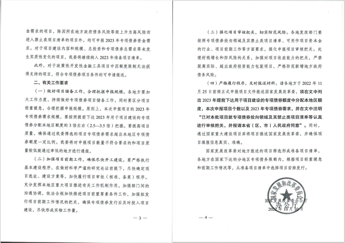 2020年、2021年的專(zhuān)項(xiàng)債申報(bào)通知都是財(cái)政部與發(fā)改委聯(lián)合發(fā)文,今年(2022年)是發(fā)改委發(fā)文,發(fā)改委對(duì)產(chǎn)業(yè),對(duì)規(guī)劃,對(duì)項(xiàng)目的敏感度更高,論證也更充分,所以,2023年的專(zhuān)項(xiàng)債項(xiàng)目方案與可研的編制質(zhì)量要求將會(huì)有所提升,在項(xiàng)目入庫(kù)的源頭審核方面或?qū)⒏鼮閲?yán)格。