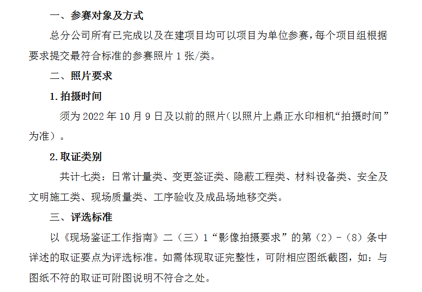2022年10月9日,我們在全公司范圍內(nèi)組織了“項目現(xiàn)場鑒證取證技能大賽”活動,自活動通知發(fā)布以來,共收到來自總分公司的119張參賽鑒證照片。