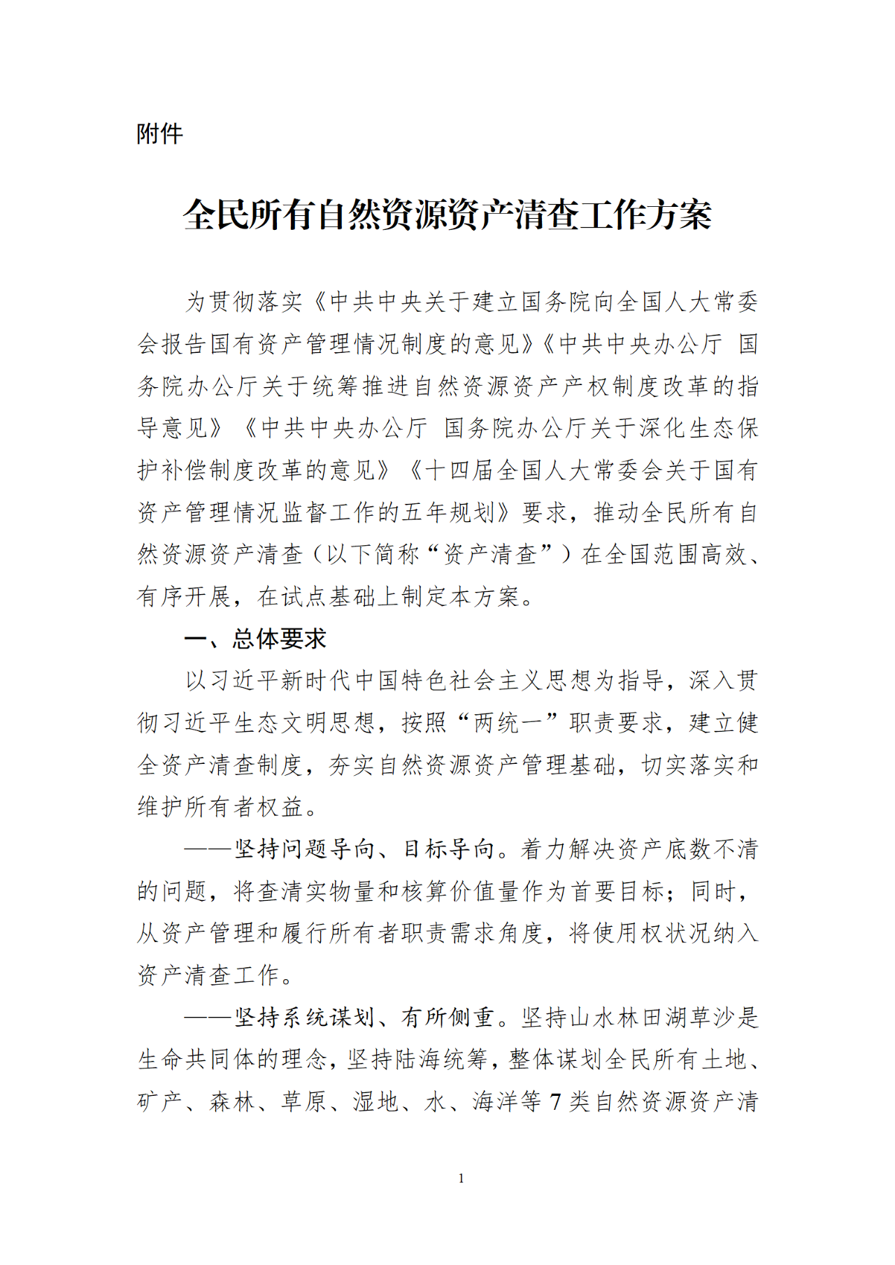 附件:《全民所有自然資源資產清查工作方案》