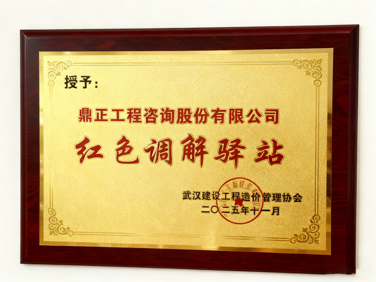 此次榮獲“紅色調解驛站”協同創建單位,既是對鼎正在工程造價糾紛領域專業積淀與社會公信力的高度認可,更是對公司長期以來堅持黨建引領、踐行社會責任的有力證明。