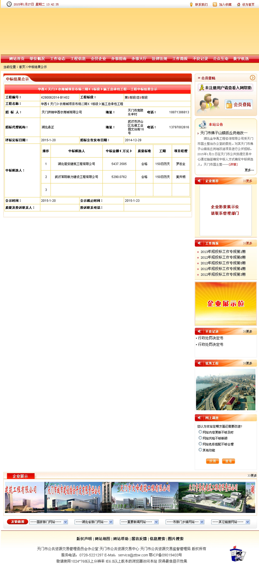華西(天門)農(nóng)商城項目市場二期(2標段)施工總承包工程