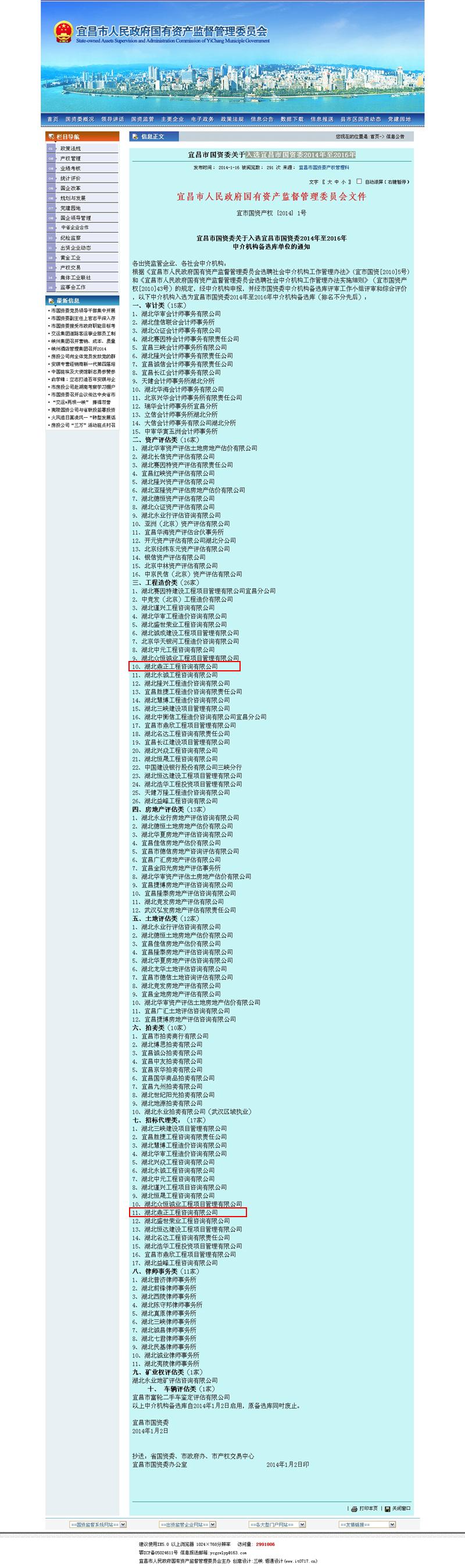 我公司入選宜昌市國(guó)資委2014年至2016年中介機(jī)構(gòu)備選庫(kù)