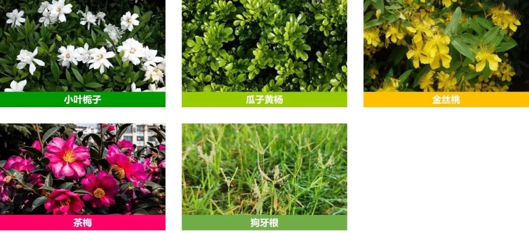 (4)此外選擇花卉地被植物時(shí),選用以觀賞效果較好的春鵑、小葉梔子、金絲桃、茶梅等。
