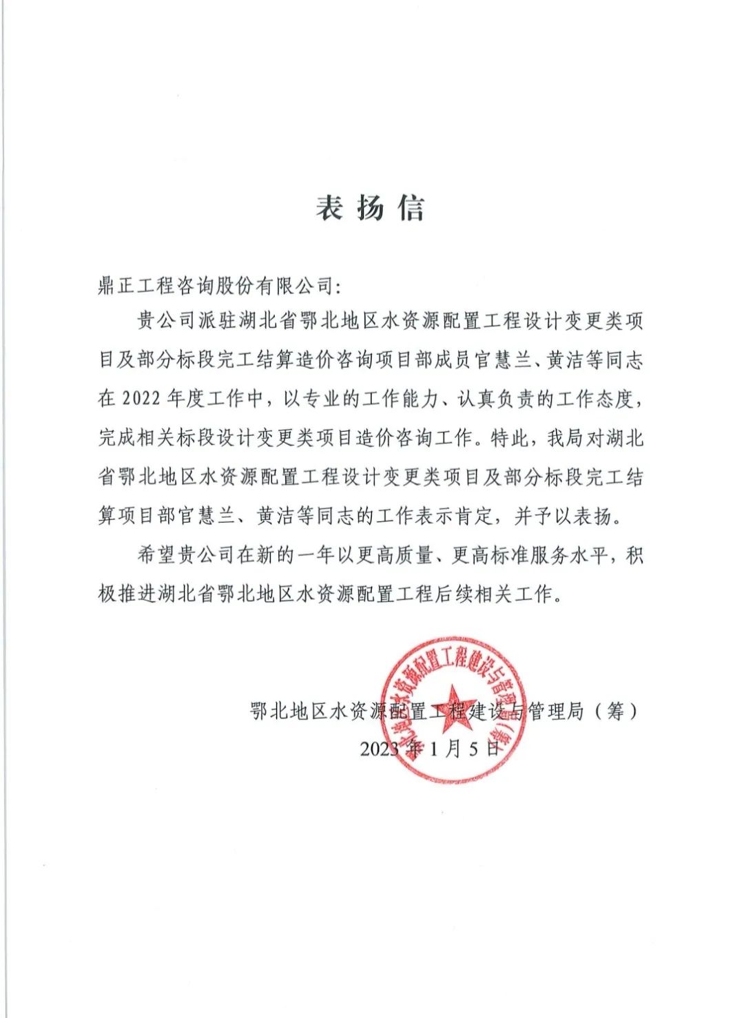 湖北省鄂北地區(qū)水資源配置工程,是解決鄂北地區(qū)干旱缺水問題的一項惠民引水工程。鼎正為該項目提供變更類結(jié)算審核、完工結(jié)算審核服務(wù),由于項目具有工期長、造價高、線路長、專業(yè)多、標(biāo)段多、交叉作業(yè)多等特點,且交工驗收時間至竣工結(jié)算審計時間間隔較長,造成審計難度大。自項目進(jìn)場以來,鼎正造價咨詢團(tuán)隊,始終以高標(biāo)準(zhǔn)、嚴(yán)要求的工作態(tài)度,以“客觀、公正、科學(xué)、實事求是”的咨詢原則,認(rèn)真執(zhí)行國家法律、法規(guī)、相關(guān)規(guī)范標(biāo)準(zhǔn)及設(shè)計要求,為規(guī)范工程變更程序“把脈支招”, 明晰了工程變更、審計實際操作流程和風(fēng)險防控責(zé)任,確保工程變更的真實性、必要性、合規(guī)性、合理性。同時,克服專業(yè)多,簽證多,施工現(xiàn)場復(fù)雜等困難,合理有效地控制了項目投資額,較為圓滿的完成了業(yè)主交付的任務(wù)。