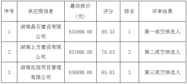 中標供應(yīng)商: 湖南晶石建設(shè)有限公司