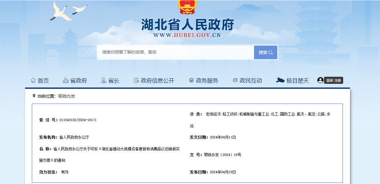 《湖北省推動大規模設備更新和消費品