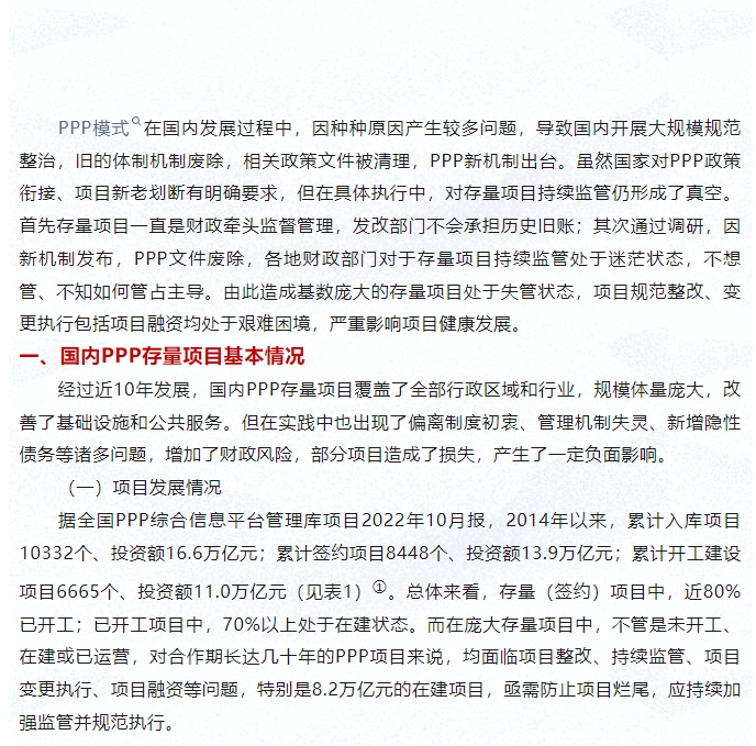 新機制下PPP存量項目持續監管探討