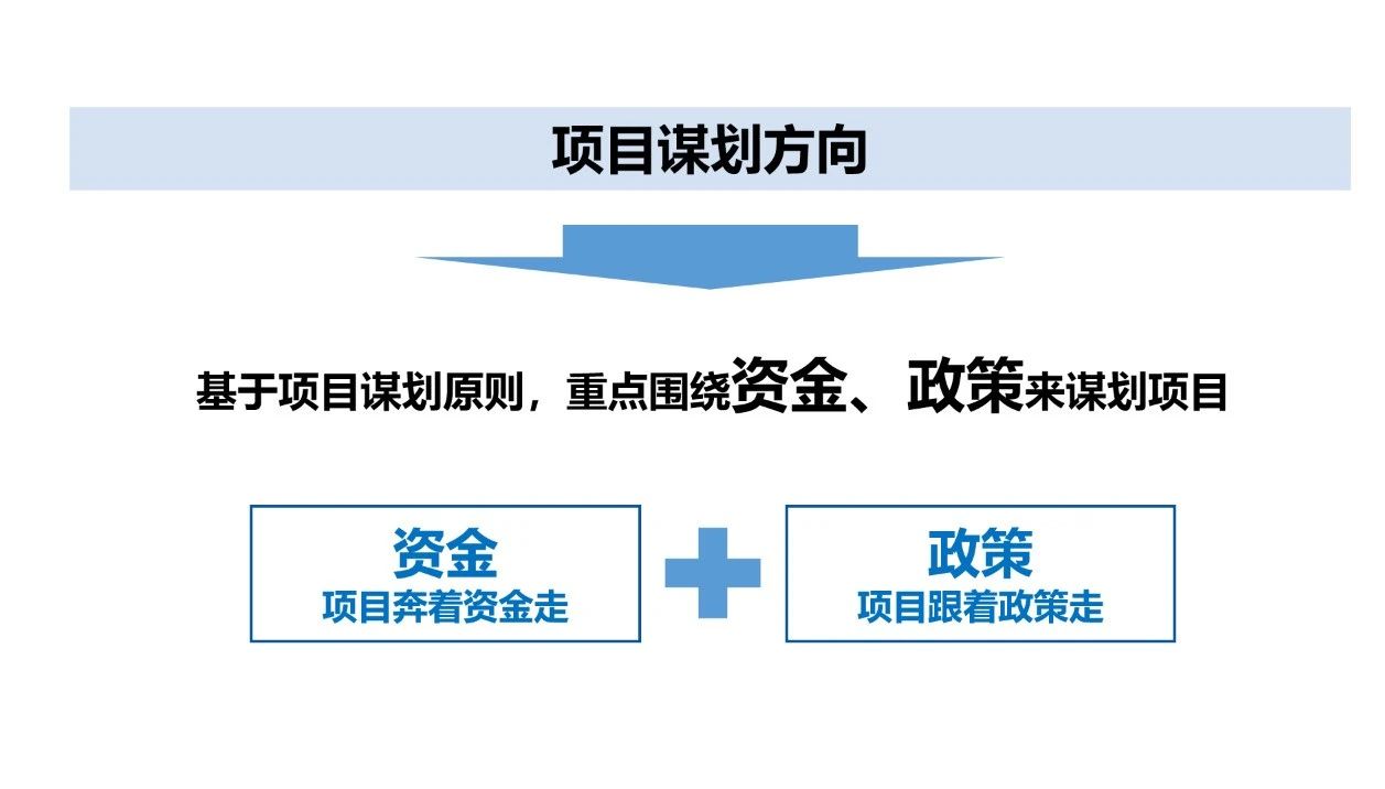如果我們還是按照以前做項目的邏輯,那是很難獲得項目的資金支持。新形勢下,項目謀劃應(yīng)該謀什么?彭總提出兩大項目謀劃方向,即項目奔著資金走和項目跟著政策走。