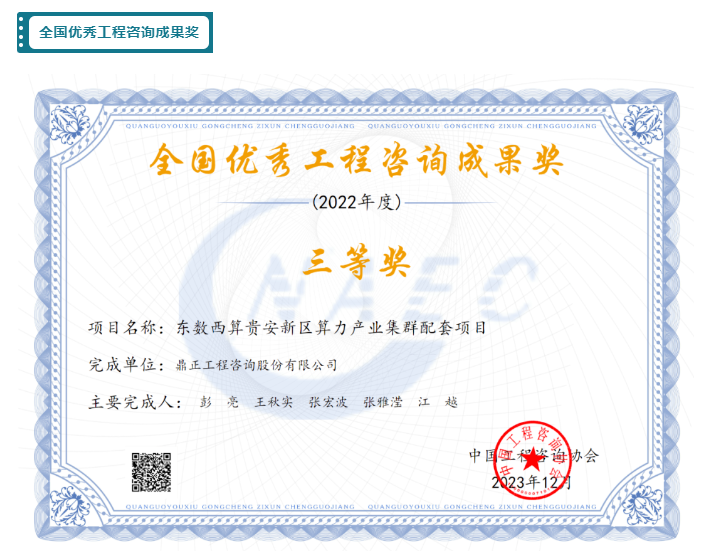 東數(shù)西算貴安新區(qū)算力產(chǎn)業(yè)集群配套項(xiàng)目榮獲全國(guó)優(yōu)秀工程咨詢成果獎(jiǎng)三等獎(jiǎng)。