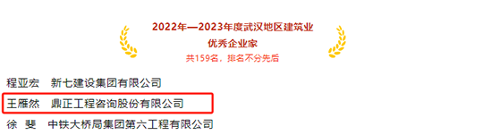 11月21日,武漢建筑業協會正式公布“2023年度武漢市最具成長性民營建筑企業”、“2022-2023年度武漢地區建筑業優秀企業、優秀企業家、優秀總工程師、優秀項目經理”兩項評選結果,鼎正連續上榜,斬獲多項行業榮譽!
