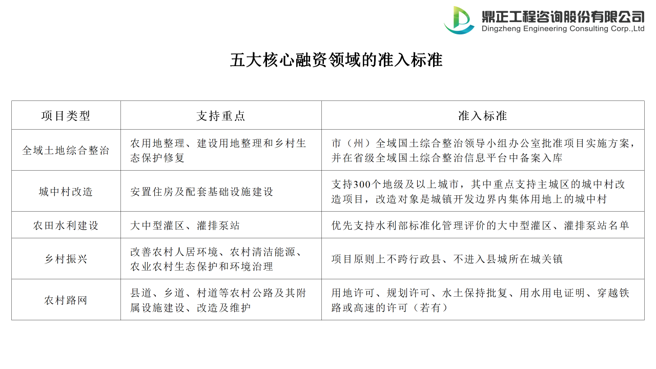 1.五大核心融資領域的準入標準