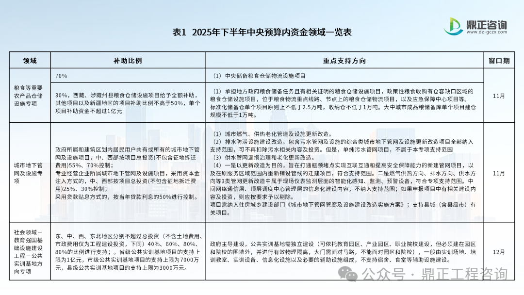 導(dǎo)讀:2025年下半年,中央預(yù)算內(nèi)資金與地方政府專項(xiàng)債券的申報(bào)通道進(jìn)入最后沖刺階段。國家資金投放的“黃金窗口”正在收窄,為搶抓政策機(jī)遇,我們結(jié)合最新政策文件,對(duì)申報(bào)領(lǐng)域、支持方向及申報(bào)要點(diǎn)進(jìn)行了全面梳理,助您搶占資金申報(bào)先機(jī),精準(zhǔn)對(duì)接國家資金,推動(dòng)項(xiàng)目落地開花!