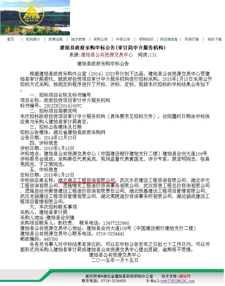 【經營成果】我司入選建始縣政府投資項目審計中介服務機構庫