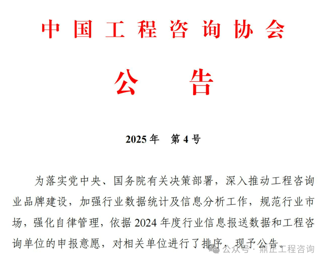 為進一步推動工程咨詢行業品牌建設,規范行業行為、提高自律管理,8月21日,中國工程咨詢協會在官網發布了關于2024年度工程咨詢單位排序的公告。鼎正憑借穩健的經營實力和綜合表現,同時榮登兩項百強榜單,位列“2024工程咨詢單位營業收入中型企業100強”第57位,以及“2024工程咨詢單位民營企業營業收入100強”第71位!