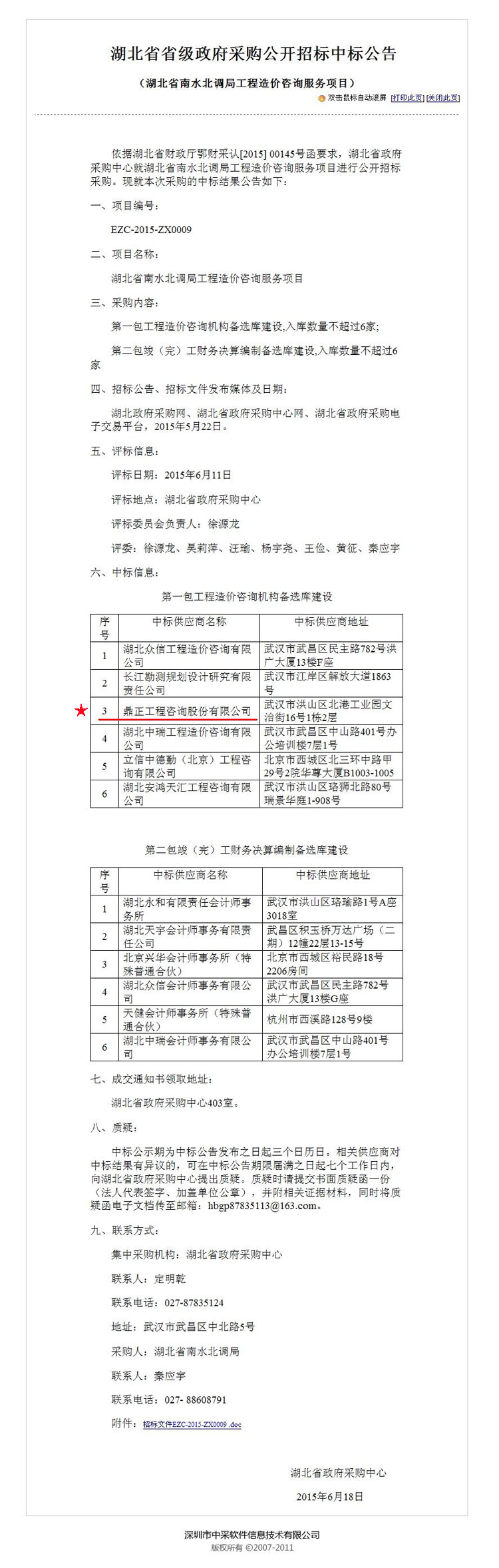 【經營成果】我司入圍2015-2017 年度洪山區財政投資評審項目中介機構庫