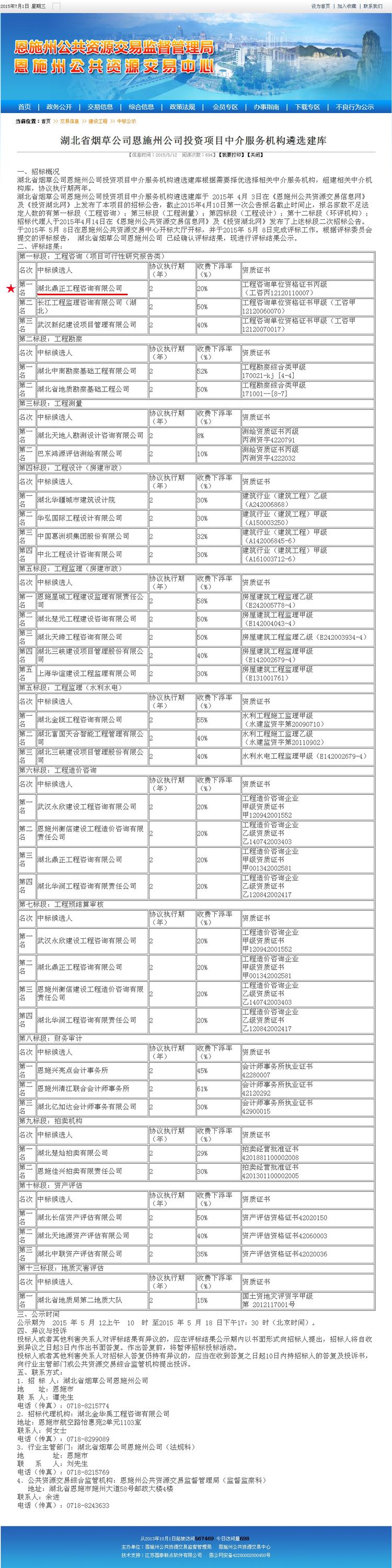 【經(jīng)營(yíng)成果】我司入選湖北省煙草公司恩施州公司投資項(xiàng)目工程咨詢中介服務(wù)機(jī)構(gòu)庫(kù)