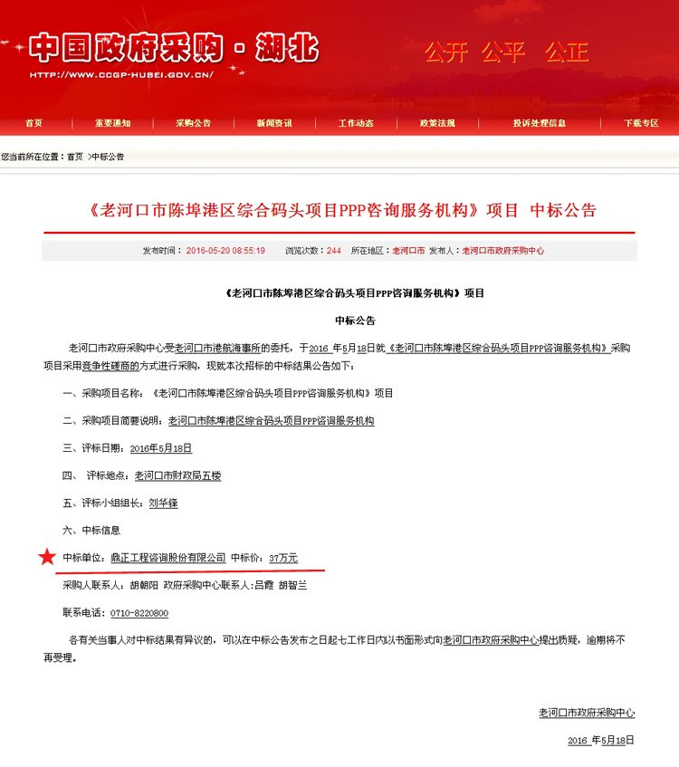 【經(jīng)營成果】我司中標(biāo)《老河口市陳埠港區(qū)綜合碼頭項目PPP咨詢服務(wù)機構(gòu)》項目