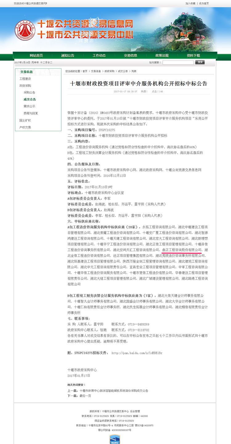 【經營成果】我司入十堰市財政投資項目評審中介服務機構庫