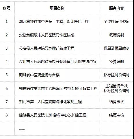 醫療衛生招采項目典型業績表