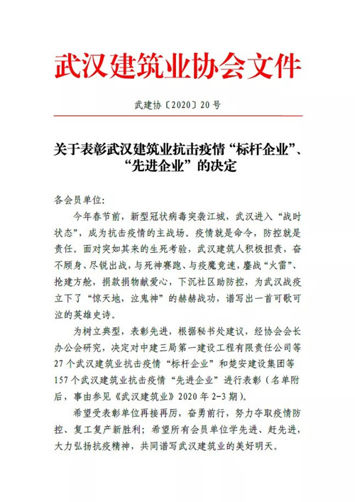 鼎正印記 | 榮獲武漢建筑業抗擊疫情先進企業